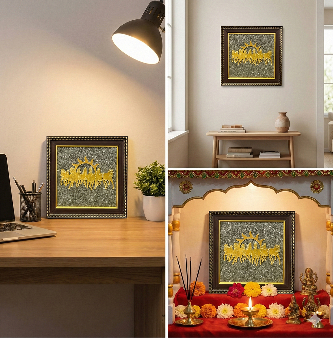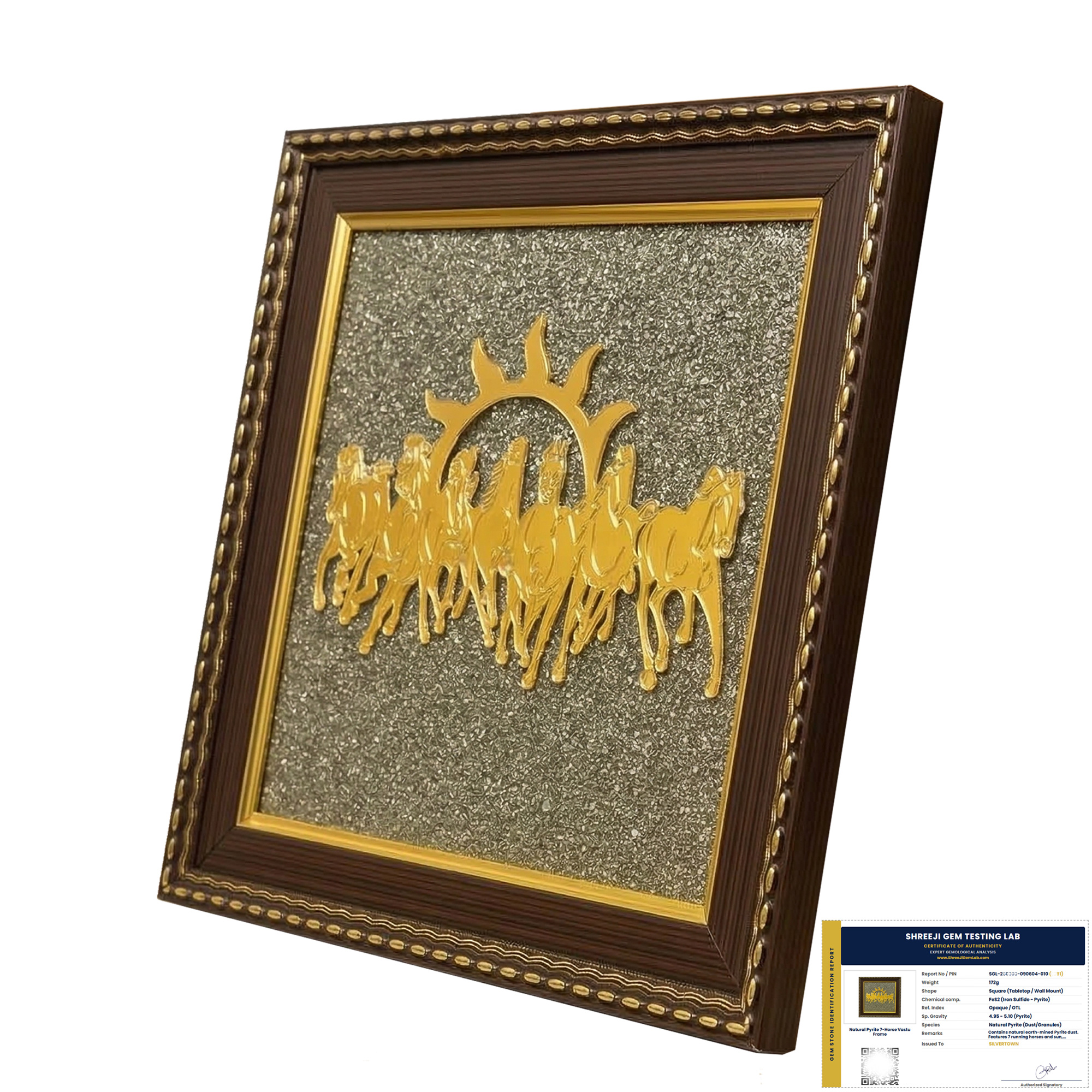"The pyrite shines amazingly. I kept it in my office. Adding a photo of the frame on my desk."